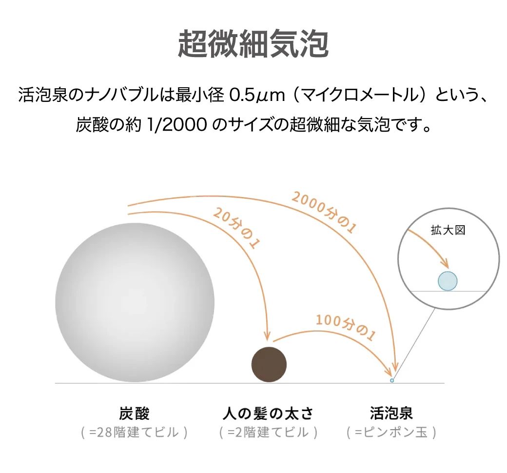 『活泡泉』とは、水に空気をナノレベルで混合させ、超微細なナノバブルを生み出します。